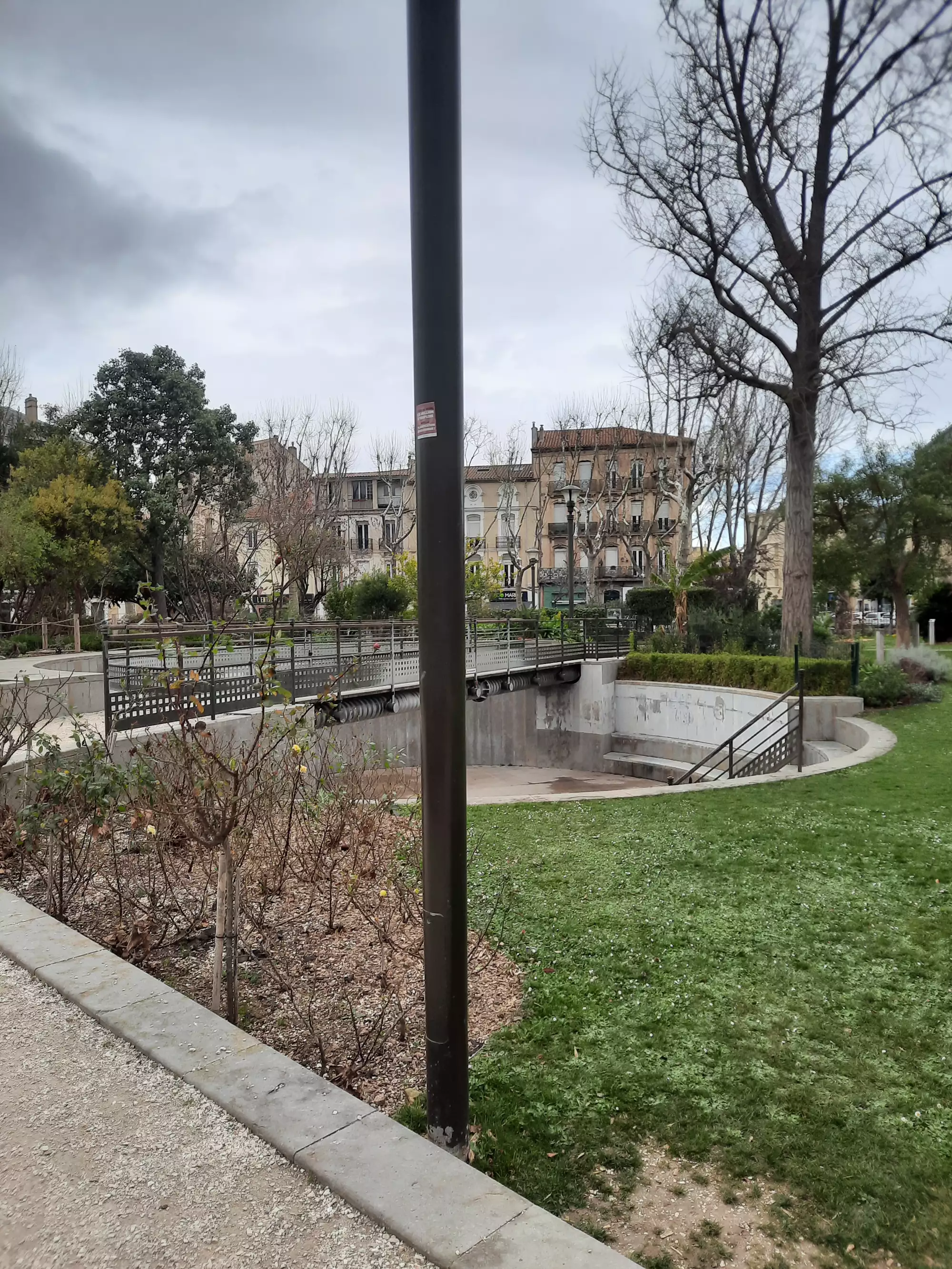 Aire de jeux au milieu d'un joli petit parc.
