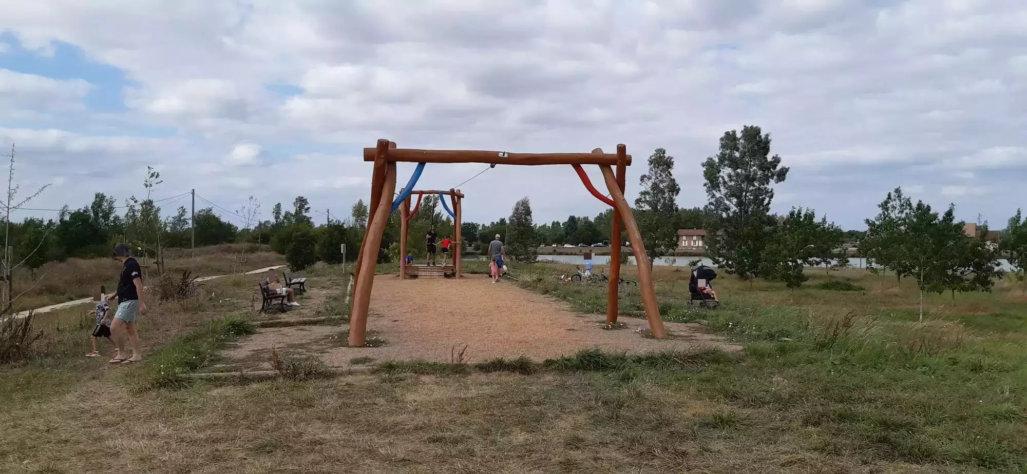 Tyrolienne bien cachée au lac de Bidot. En bon état !