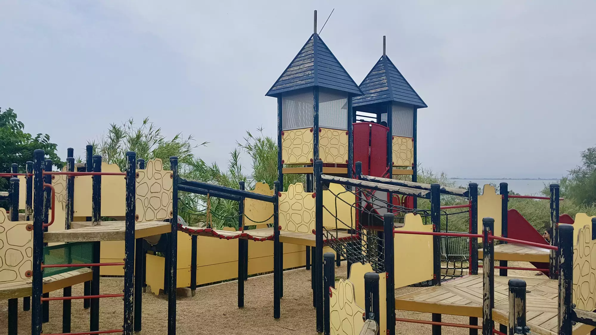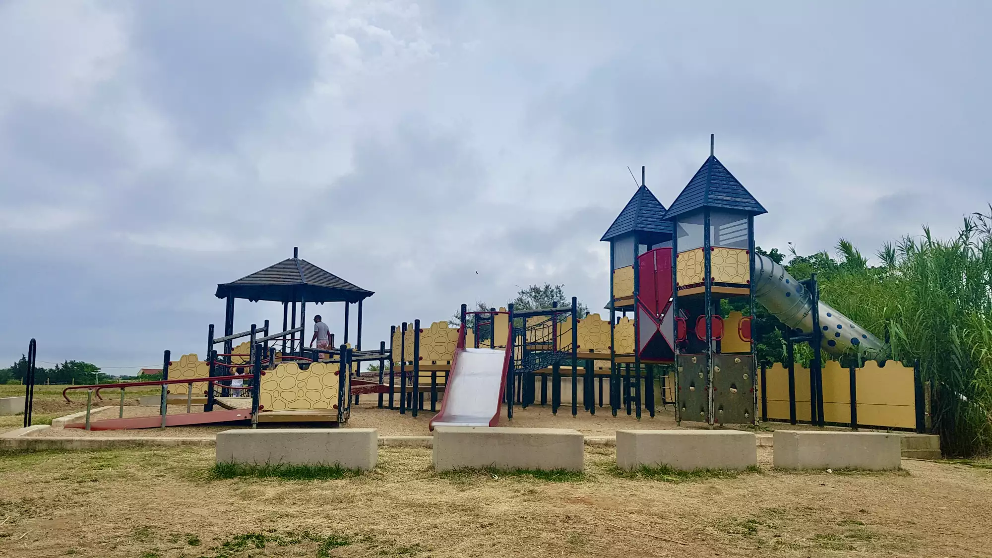 Parc très sympa au bord de l'étang du Méjean avec son château fort et son bateau pirate. Composé de toboggans géants, de plusieurs parcours et filets à escalader ou traverser, les enfants s'y régalent.