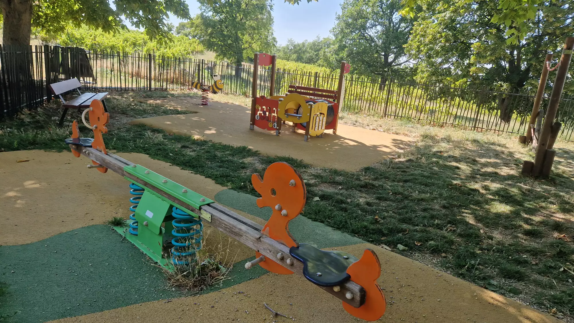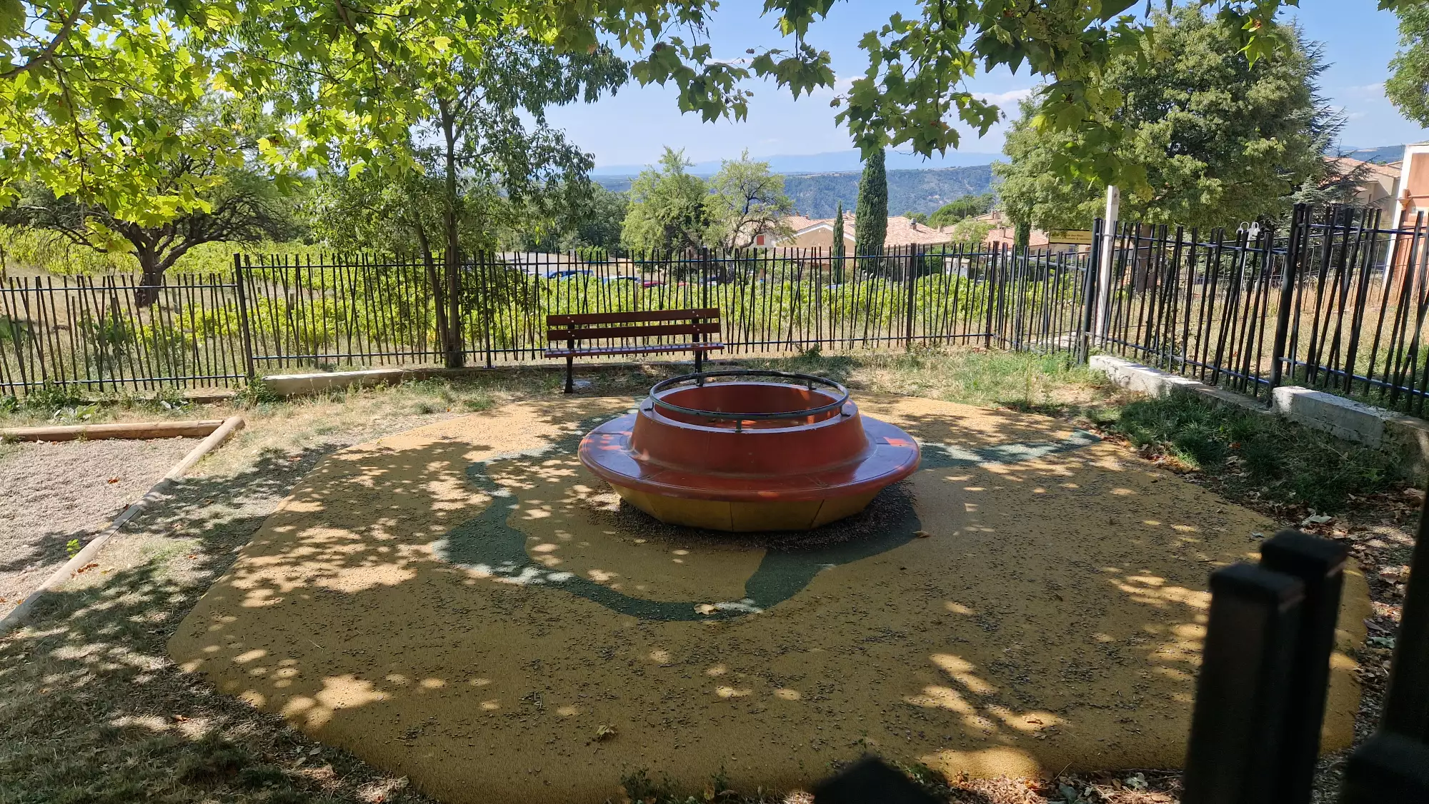Parc de jeux ombragé et clôturé sur Aiguines, pour les petits comme les plus grands, les enfants s'y régalent.