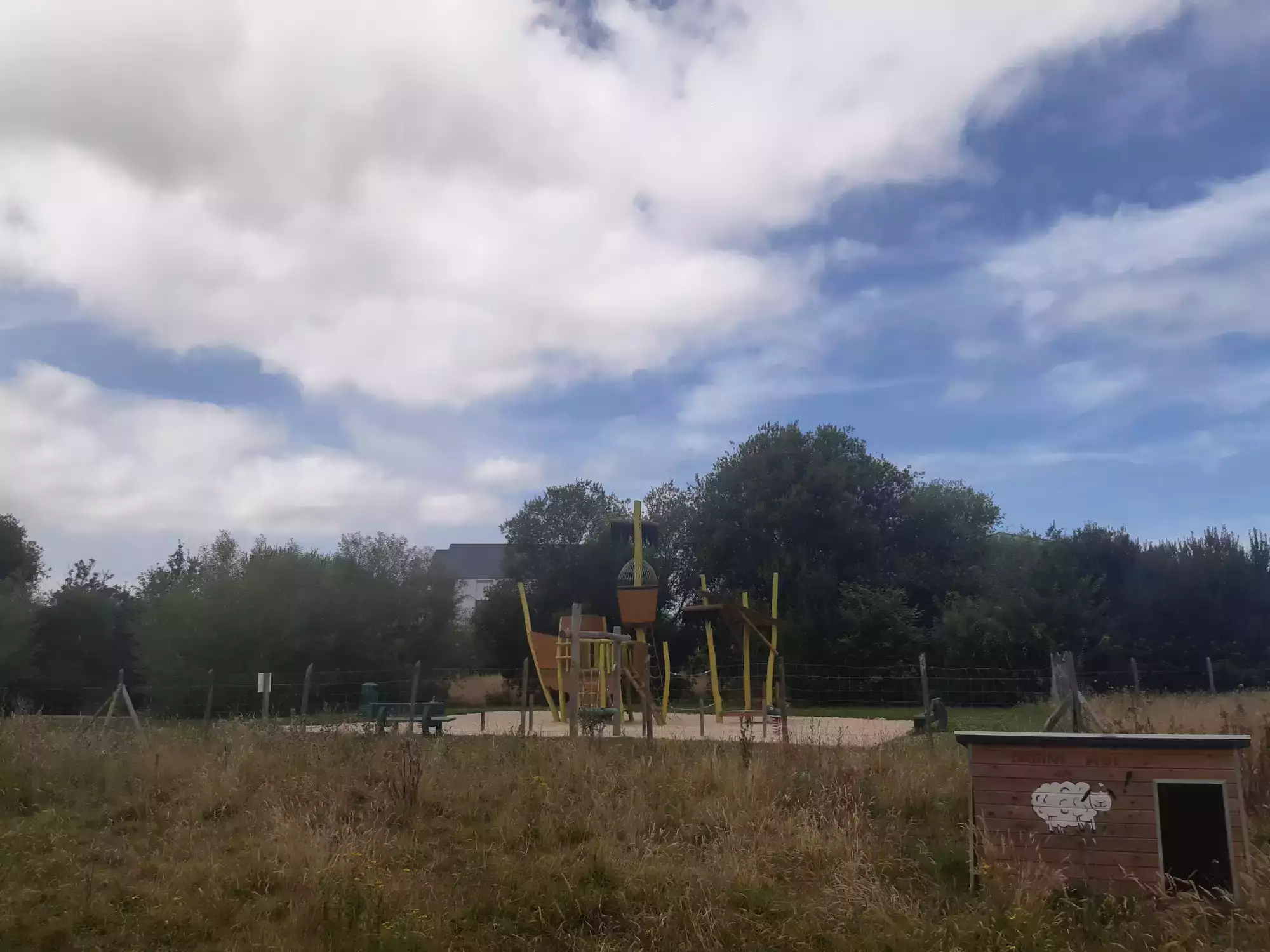 Structure inspirée d’un bateau pirate, une balançoire, un toboggan et deux jeux sur ressort
