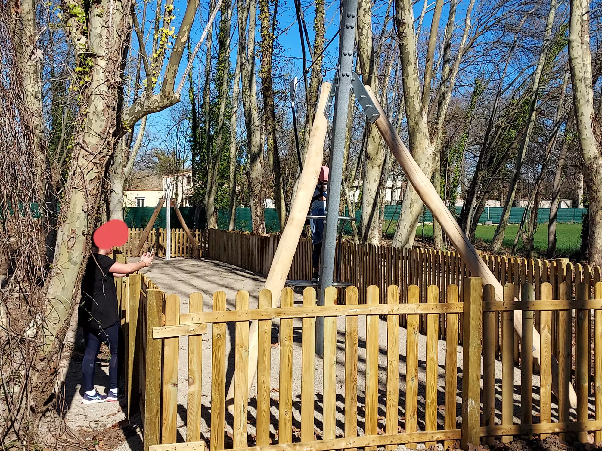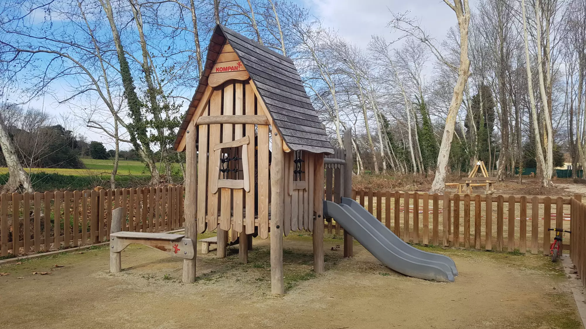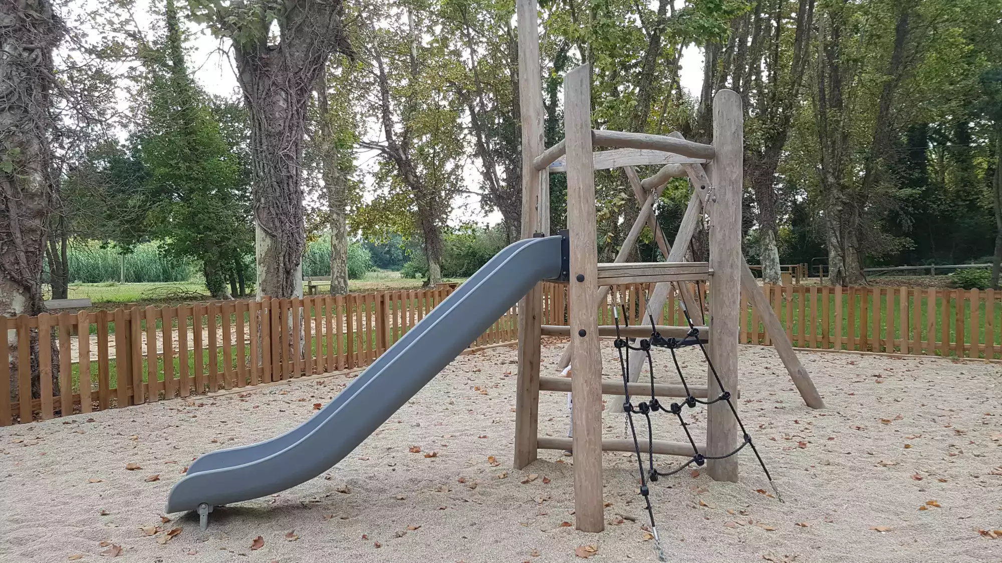 Aire de jeux à Entre-Vignes, entièrement en bois.