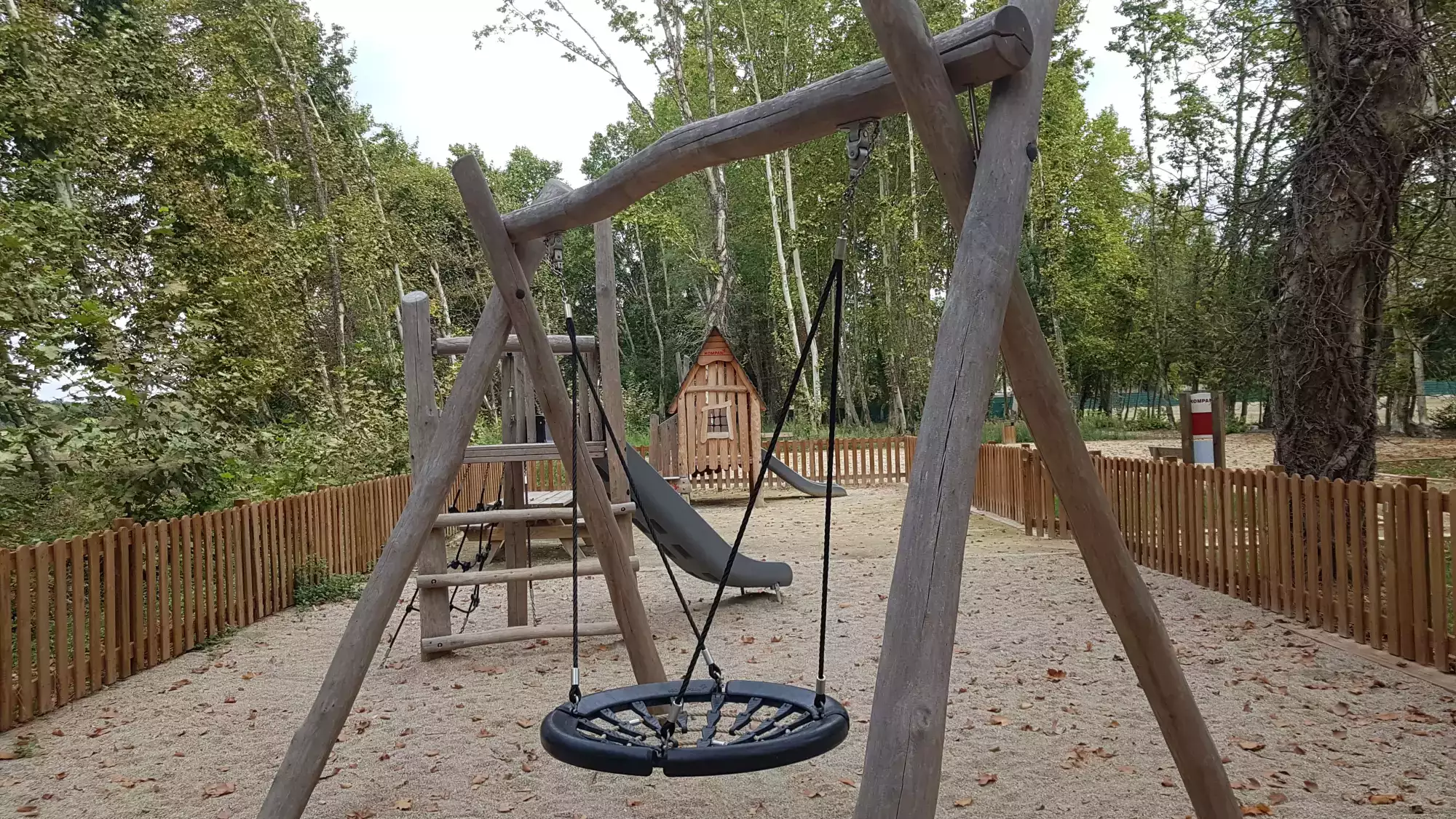 Les enfants pourront s'amuser avec les toboggans, maison en bois, balançoire ou encore avec la nouvelle tyrolienne !