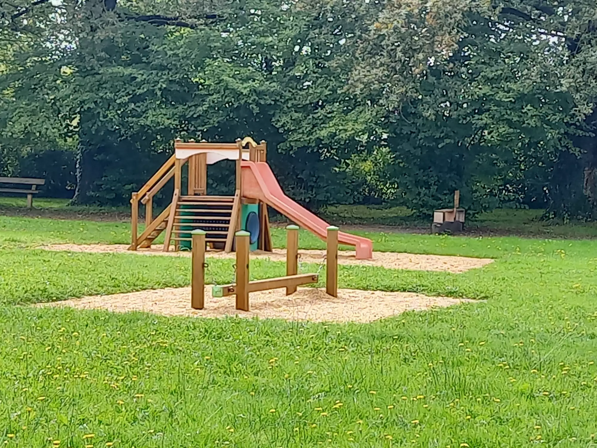 Petit parc propre , au calme à côté de l 'étang de pêche.