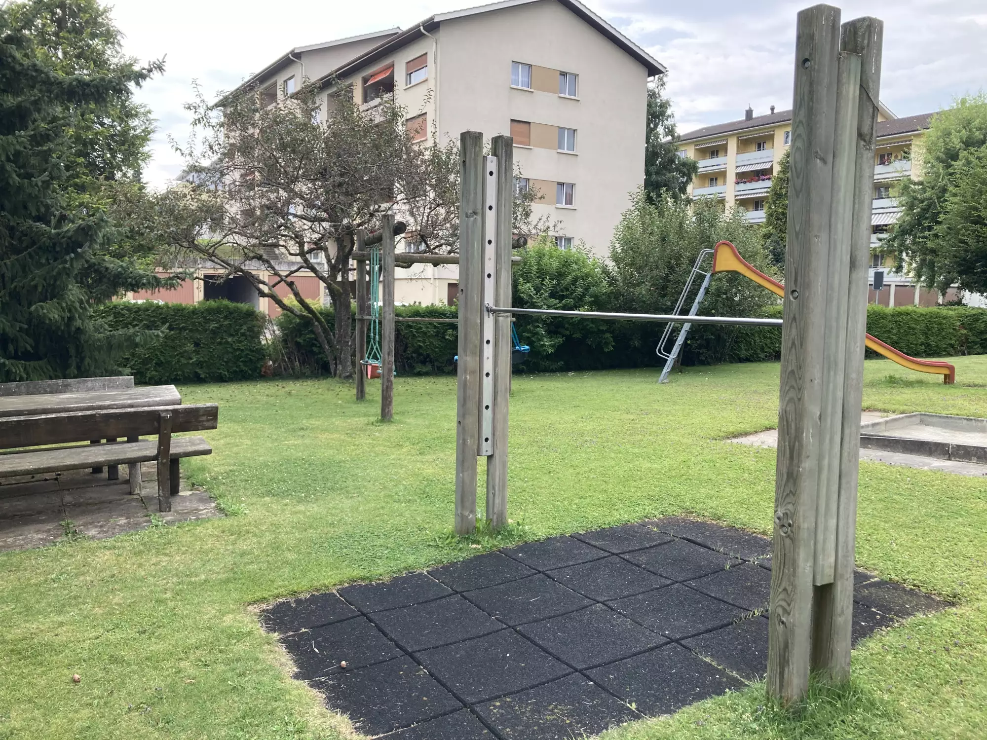 Parc de jeux d’une résidence. Quelques places visiteurs.