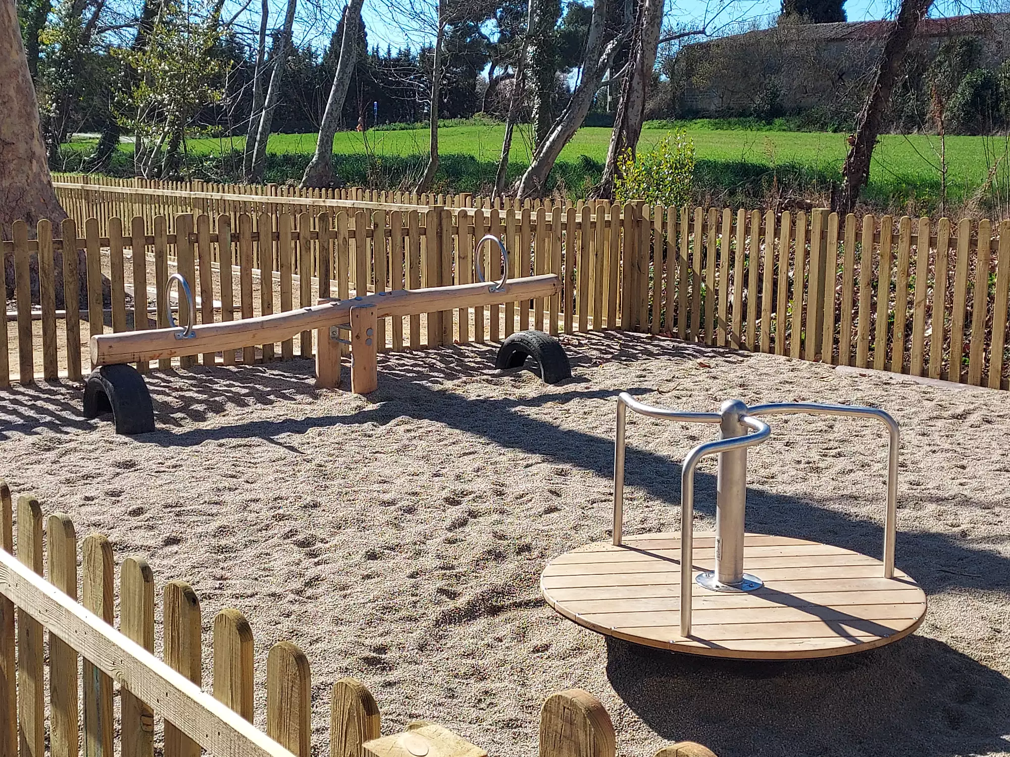 Aire de jeux à Entre-Vignes, entièrement en bois.