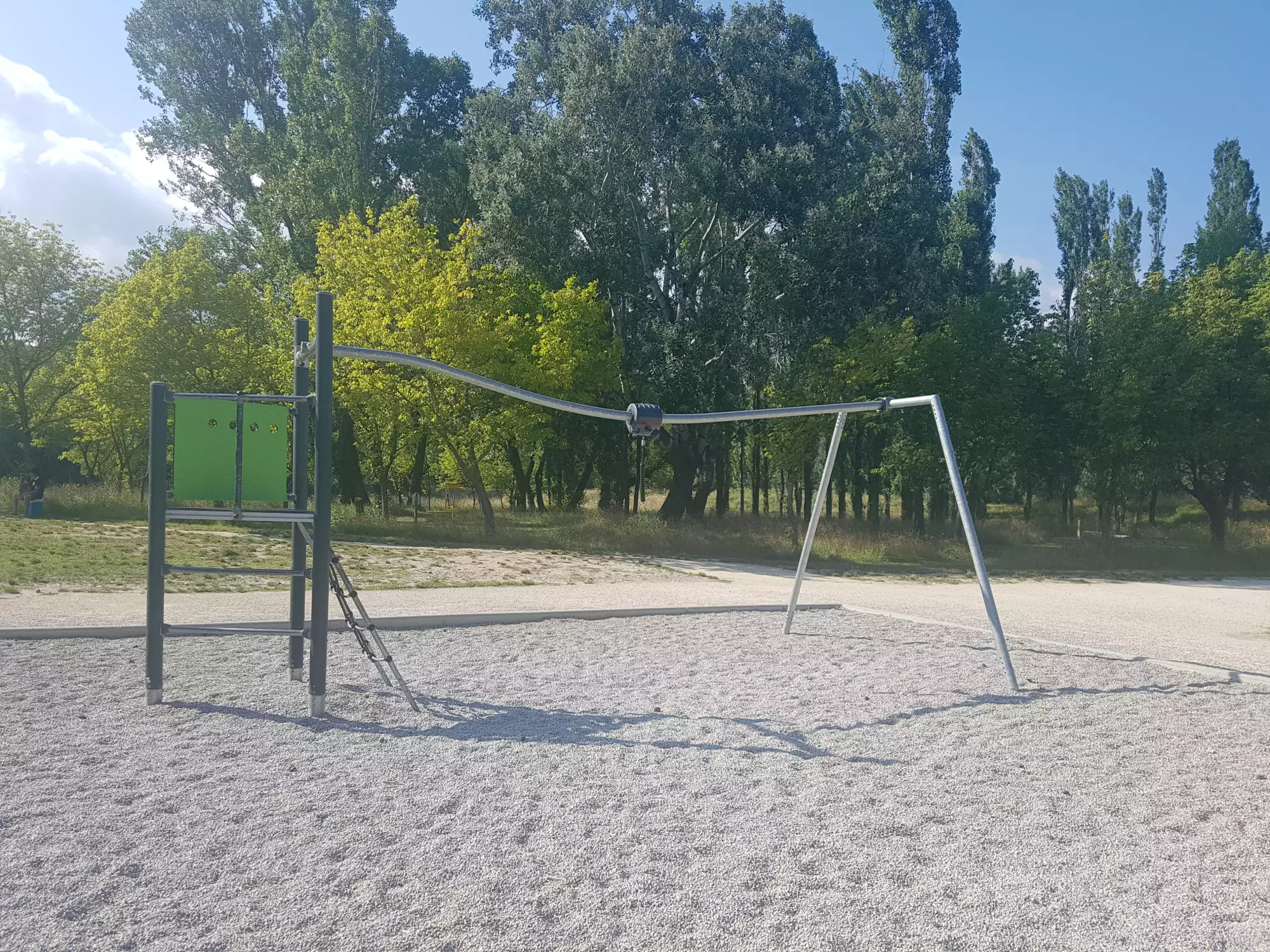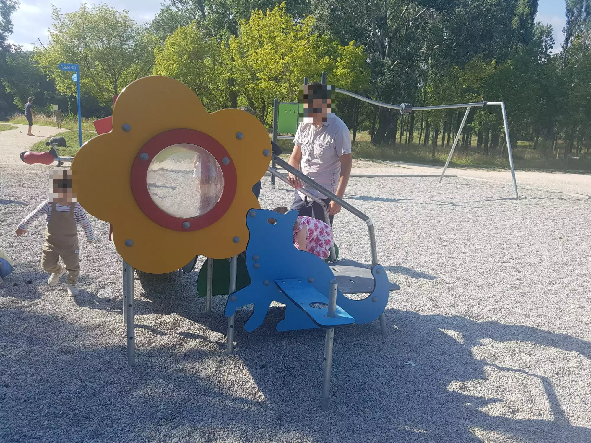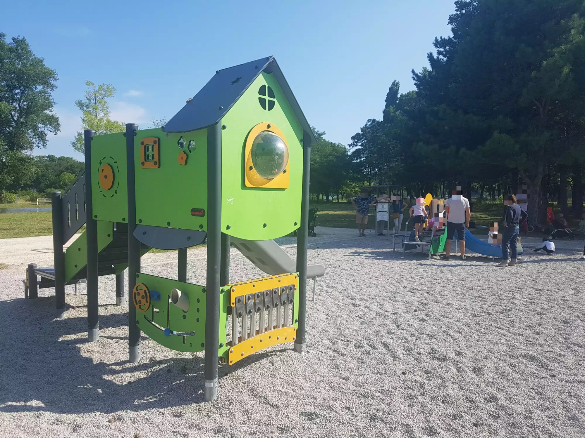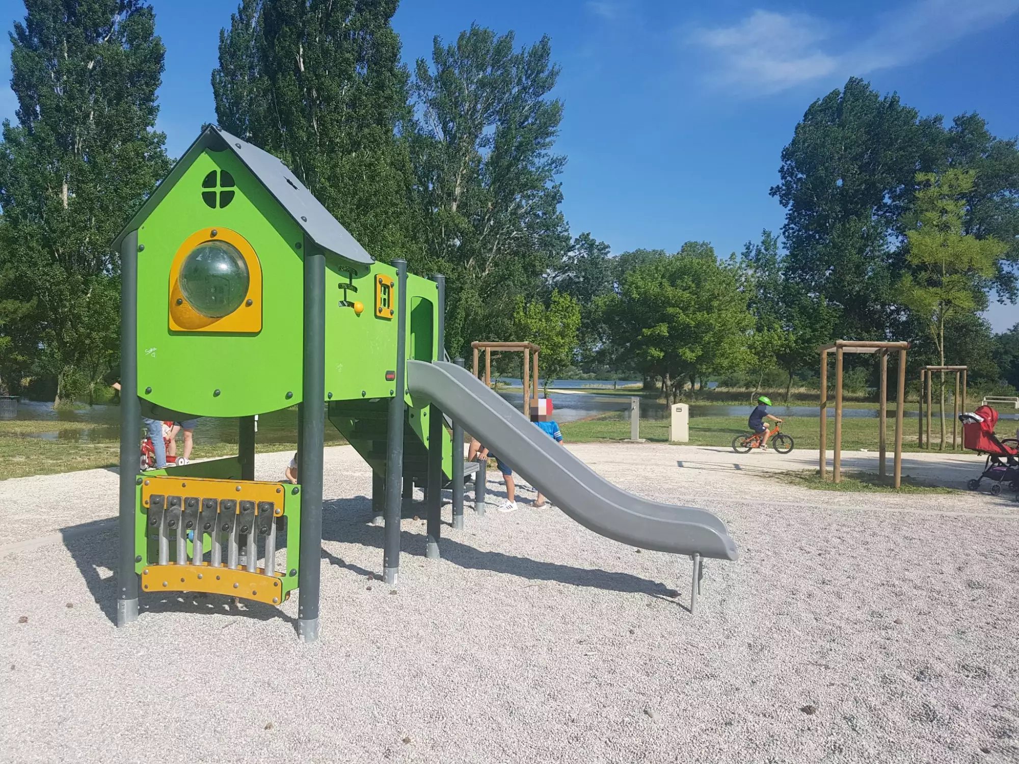 Les enfants peuvent ainsi s'amuser dans cette aire de jeux, tout comme jouer au ballon, se promener, faire du vélo ou même se baigner plus loin dans la base de loisir.