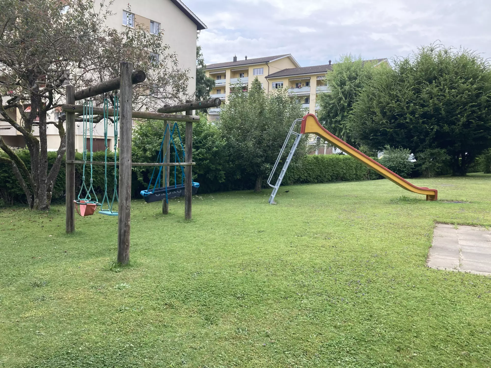 Parc de jeux d’une résidence. Quelques places visiteurs.