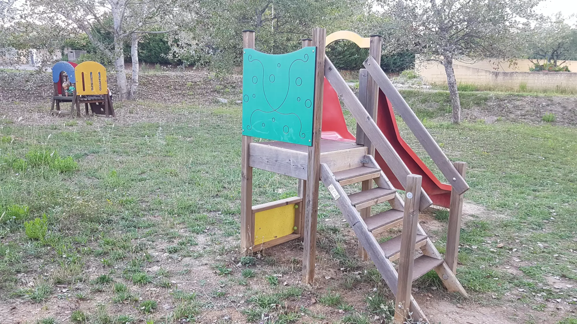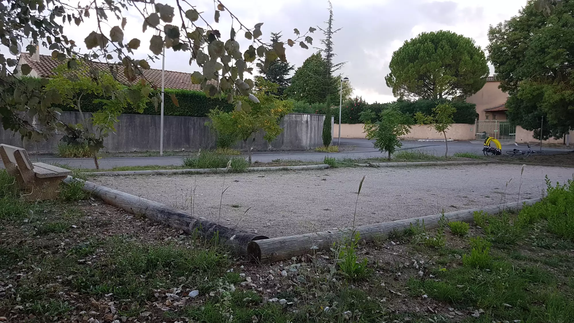 Au calme, à coté d'un terrain de pétanque.
