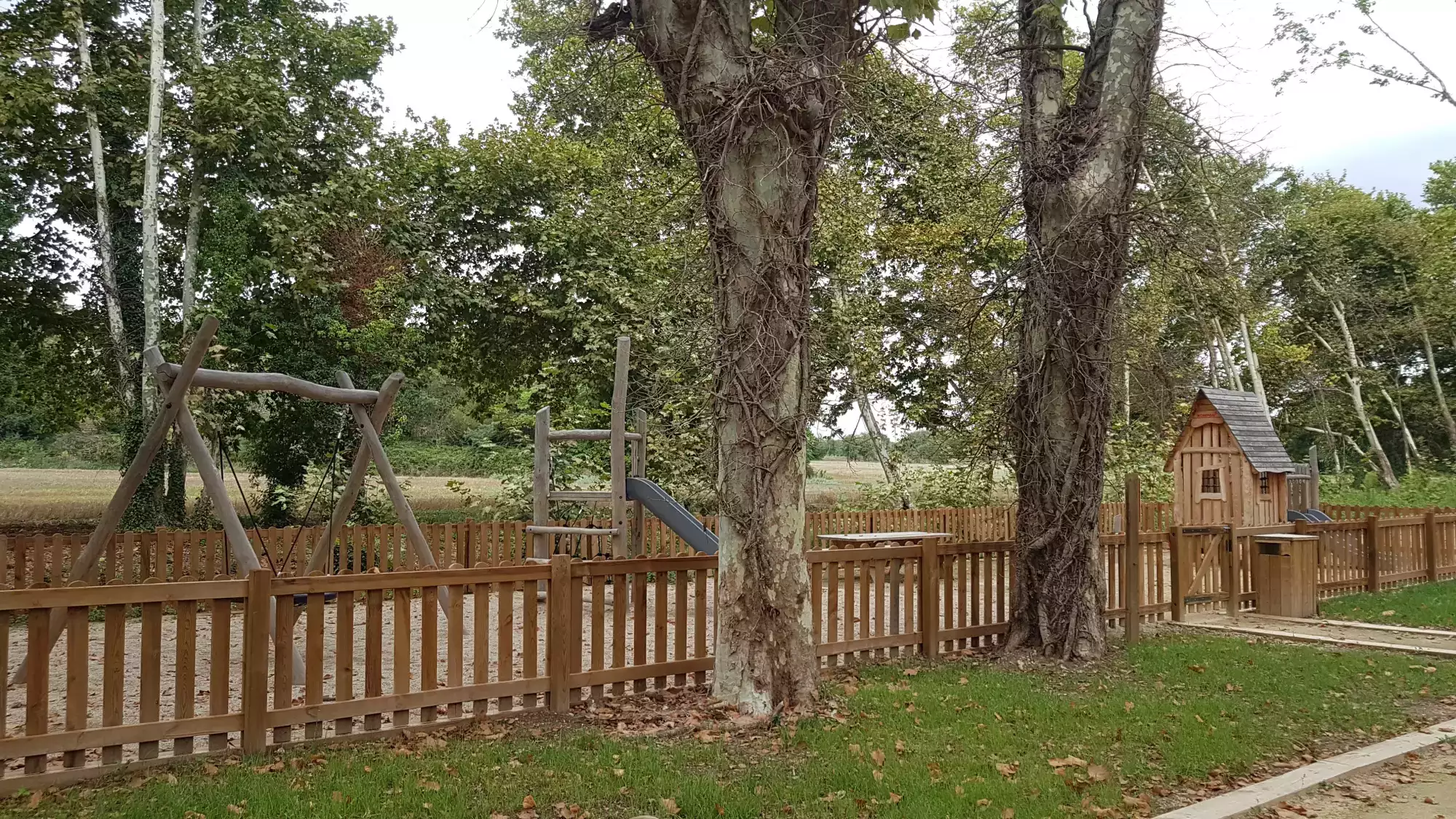 Aire de jeux à Entre-Vignes, entièrement en bois.