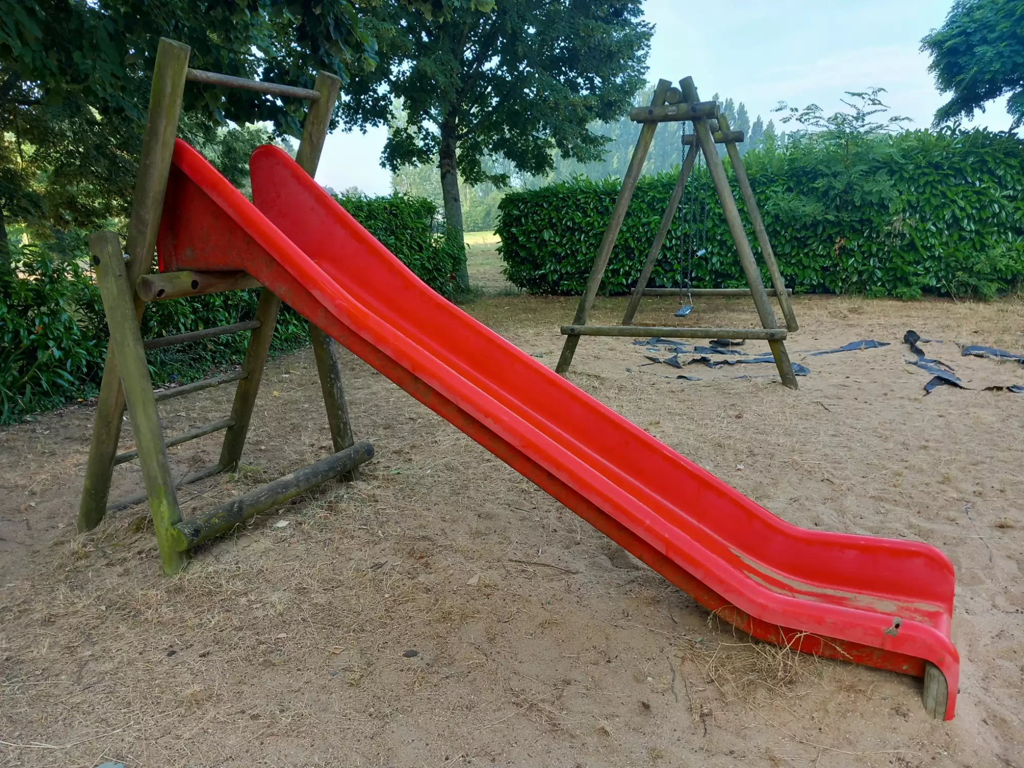 Toboggan, balançoire et trapèze.